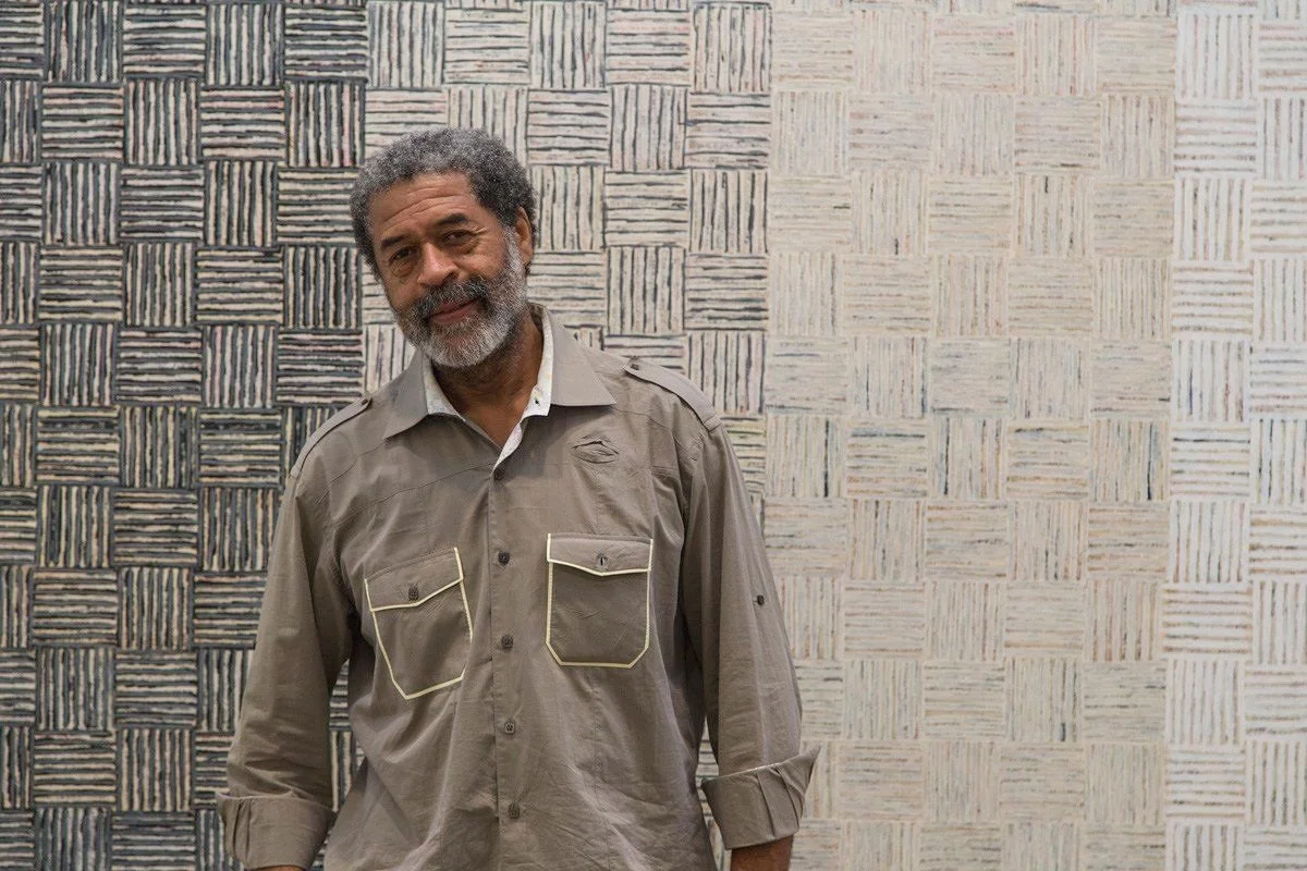 McArthur Binion (b. 1946) masterfully blends collage, drawing, and painting to create autobiographical abstractions. His works feature painted minimalist patterns overlaid on an “under surface” composed of elements, such as pages from his address book, and photographs from his childhood. These foundational images, concealed and abstracted by grids of oil stick, form the intricate base of his works. Unlike his contemporaries who focused on materiality and abstraction, Binion’s works are laboriously hand-drawn lines and intimate details of his identity and personal history.