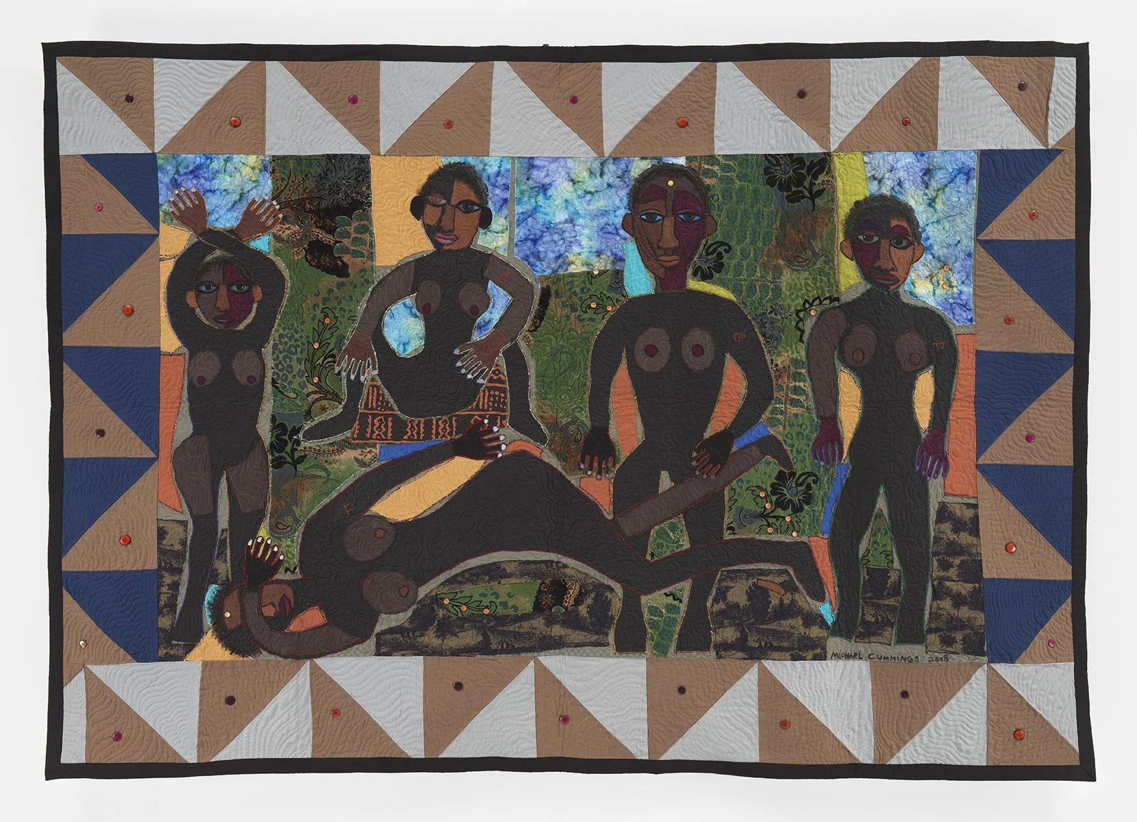 Appliqué quilt, machine sewn/quilted with embellishments